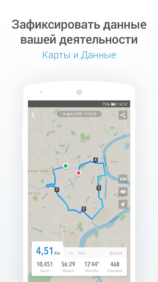 MapMyWalk — приложение для шагомера с акцентом на маршруты и фитнес-трекинг. Оно отслеживает каждый шаг, расстояние и маршрут на карте.