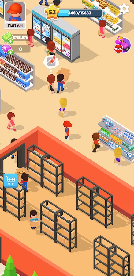Idle Supermarket Tycoon подходит для тех, кто любит наблюдать, как бизнес растёт практически сам. Игрок открывает новые отделы, нанимает персонал и зарабатывает прибыль, даже когда не играет.