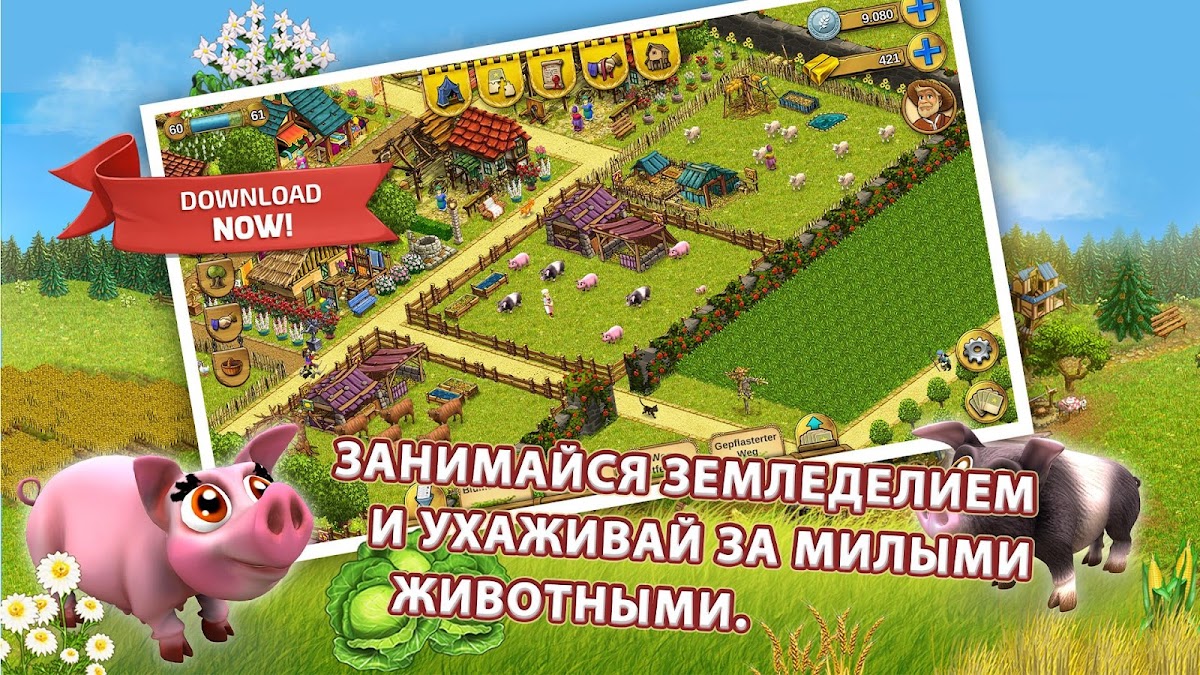 Hay Day предлагает классическую фермерскую жизнь с упором на социальные взаимодействия. Вы выращиваете урожай, ухаживаете за животными и строите производство, а затем продаёте продукцию на рынке соседям и друзьям. Игра радует яркой графикой и интуитивным управлением: все действия совершаются парой касаний по экрану. Особая ценность Hay Day — мультиплеерный аспект, когда фермеры могут обмениваться товарами и участвовать в совместных событиях, создавая настоящий онлайн-сообщество фермеров.