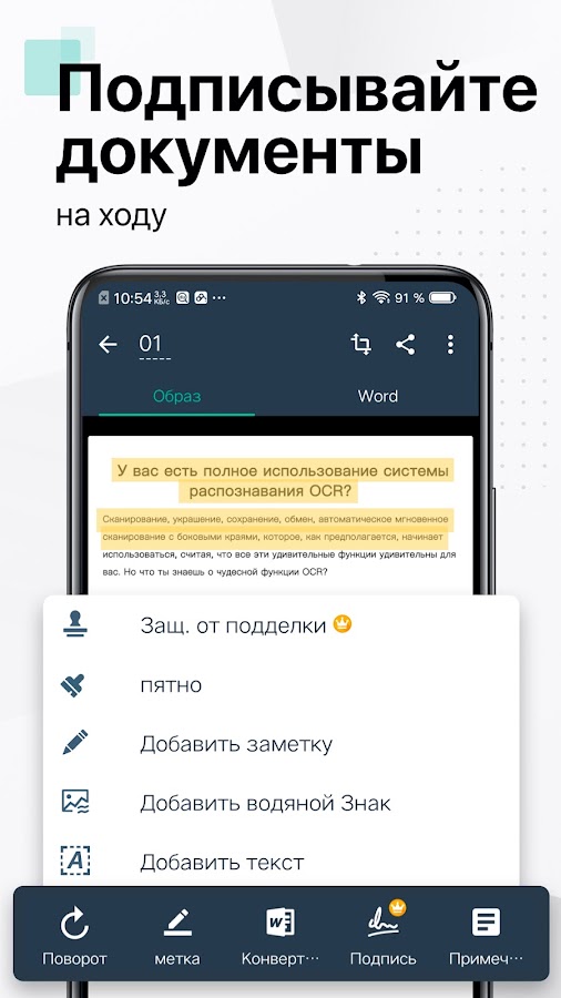 Технологии: Использует алгоритмы машинного зрения для устранения теней и искажений на фото. Функция OCR (распознавание символов) превращает снимок бумажного листа в «живой» текст, который можно копировать и редактировать в PDF-формате.
