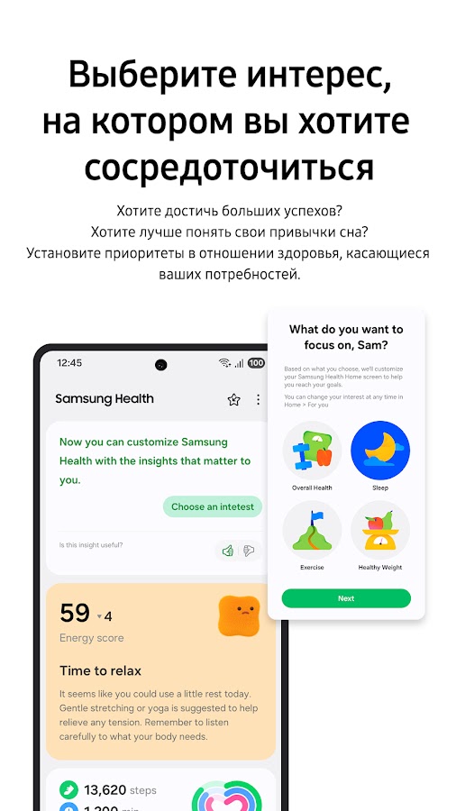 Кому подойдет: Владельцам устройств Samsung, которые хотят комплексно контролировать здоровье.