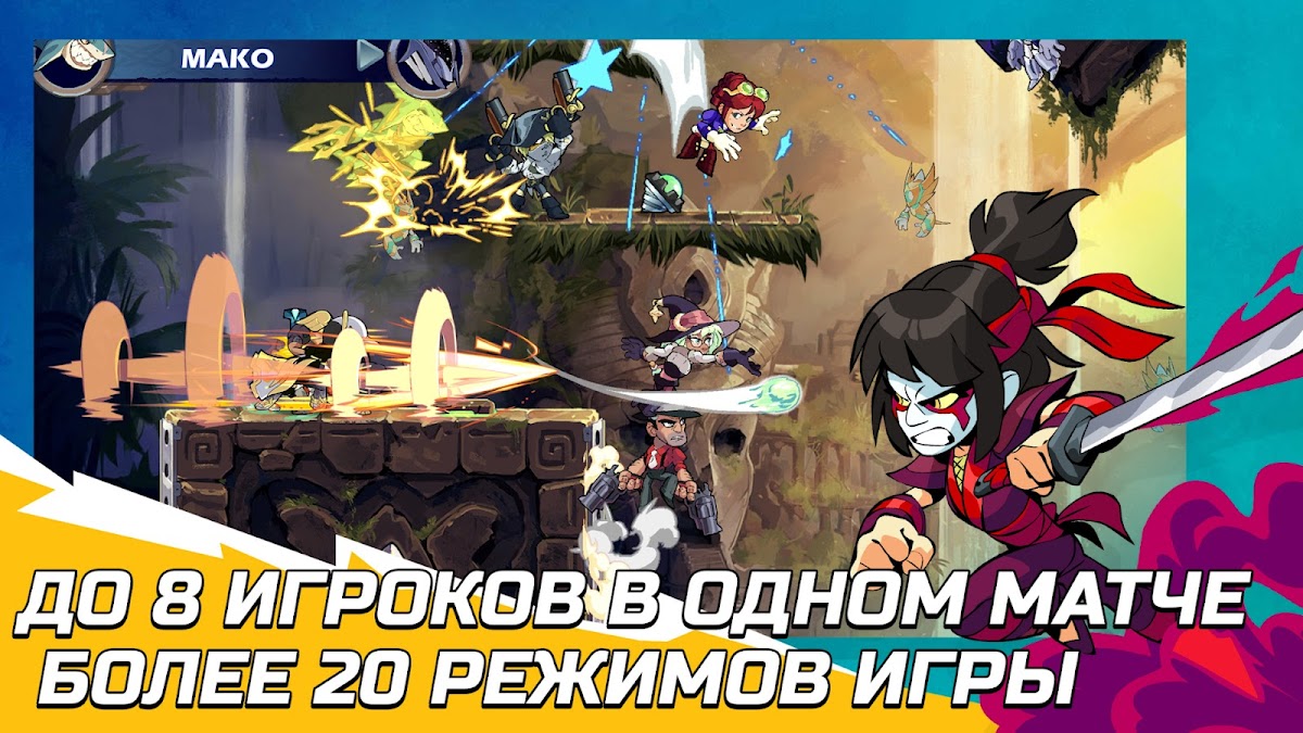 Brawlhalla — популярный файтинг с большим выбором персонажей и режимов. Благодаря кроссплатформенности вы можете драться с друзьями и игроками с разных устройств без ограничений.