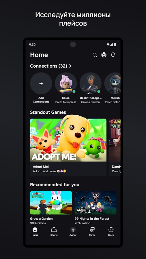 Roblox — не просто игра, а платформа для создания собственных миров и мини-игр. С кроссплатформенной поддержкой Roblox позволяет миллионам игроков с ПК и мобильных устройств объединяться для весёлого времяпрепровождения.