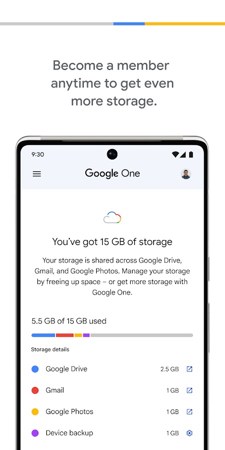 Google One — это платная подписка от Google, которая расширяет возможности Google Диска: больше места, автоматическое резервное копирование, поддержка.
