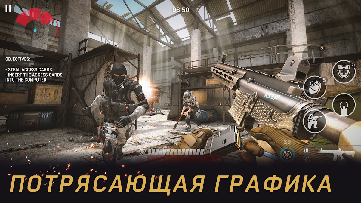Почему стоит играть: Отличный вариант для фанатов CS:GO на мобильных устройствах. Режимы «Defuse» и «Deathmatch» позволяют прокачивать точность, реакцию и стратегию.