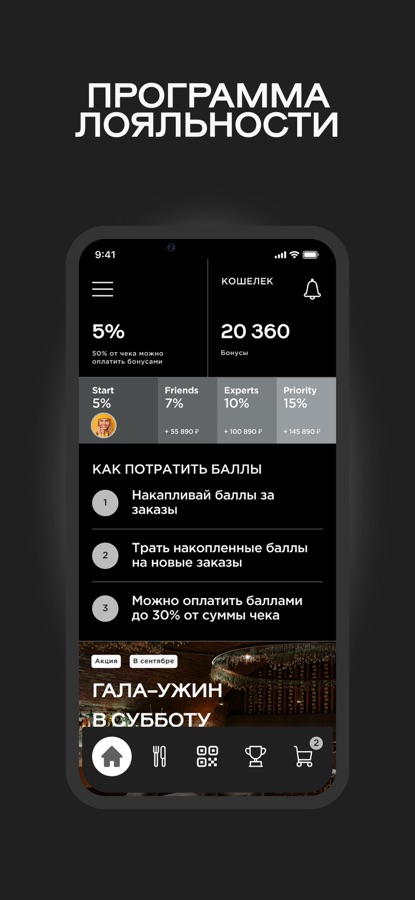 Всегда в вашем смартфоне. Проверяйте количество бонусов, узнавайте об акциях и предложениях, отслеживайте статус доставки из любимых ресторанов!