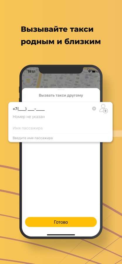 Используйте опцию “Вызвать такси другому” в разделе “Пожелания” и укажите его номер телефона. Когда такси подъедет, на указанный номер придет СМС, а вам — сообщение в приложении.