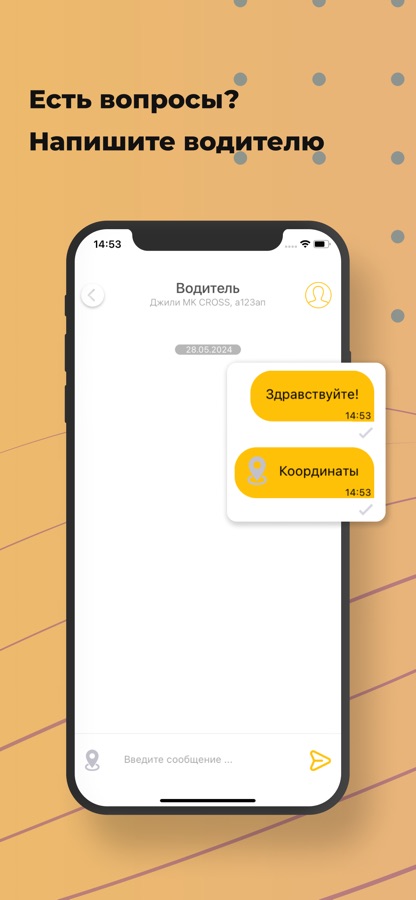 Спросите в чате приложения, где он находится, или отправьте ваши координаты с помощью одной кнопки.