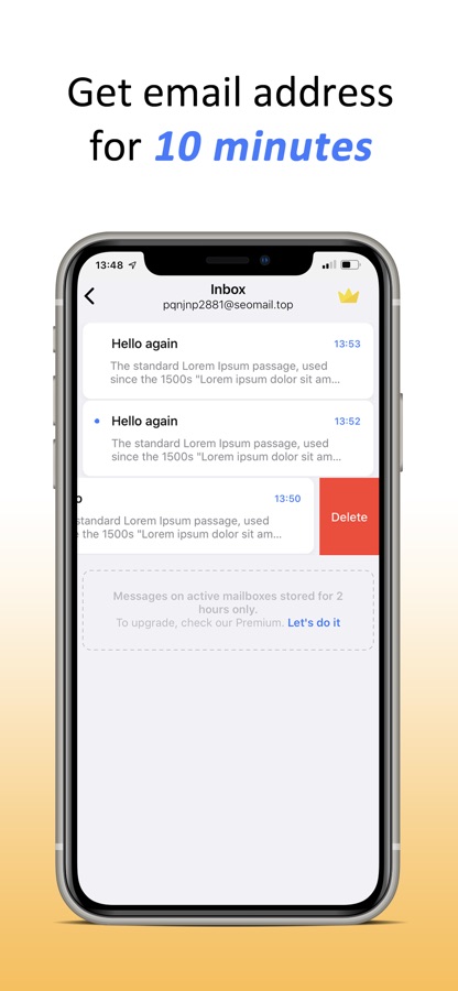 Скачайте приложение 10 Minute — Temp Mail Address для iOS бесплатно - последняя версия (2.1.9) уже доступна для установки на ваш iPhone или iPad.