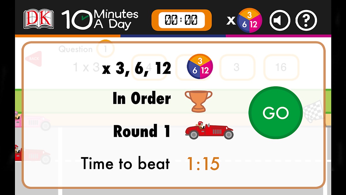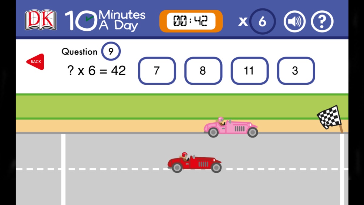With 10 Minutes a Day Times Tables you can practice your times tables through exciting car races, the faster you solve the questions the quicker your car will speed across the finish line. It’s also a fun ‘beat the clock test’ where you show off your maths skills by racing across the line before the time runs out. If you don’t get the answer right away you’ve got a chance to keep trying for the right one and if you don’t make it you’ll get handy hints and tips to help you next time. Play your way through the rounds, speeding your way from bronze through silver and all the way up to gold. Once you’ve mastered the regular times tables you can test yourself in mixed times tables races, whizzing your way through with your maths knowledge.