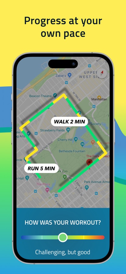 ● Human coach voice through your headphones that tells you when to walk / run.