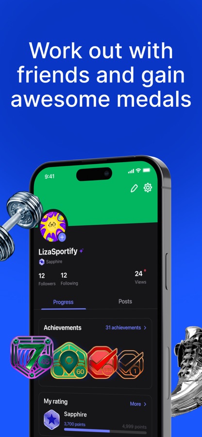 Подписывайтесь на своих друзей. Смотрите какие занятия они посещают. И ходите вместе. Например, если записались на борьбу, можно позвать друга прямо внутри приложения. Посещая занятия, можно зарабатывать достижения — их тоже увидят ваши друзья