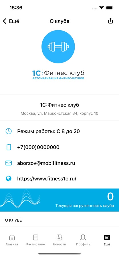 Информация о 1С Фитнес Клуб