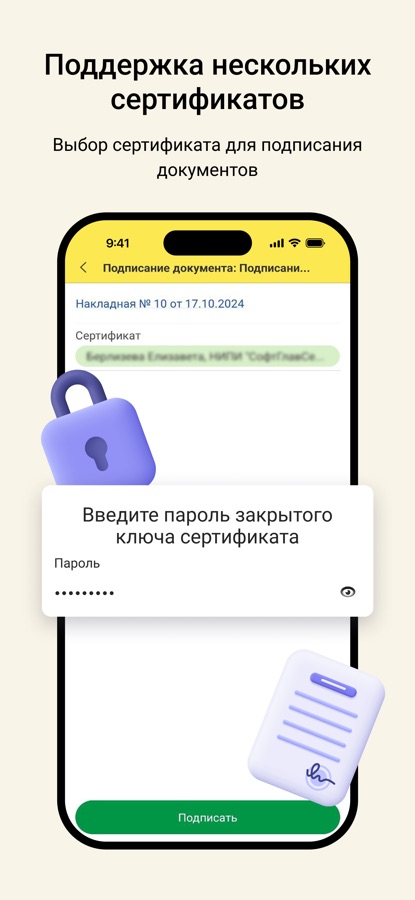 • подписание электронных документов