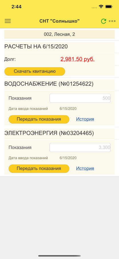 Приложение поможет председателям оперативно передавать необходимую информацию о начисленных взносах, квитанции об оплате владельцам участков, а владельцы участков в любой момент без необходимости личного похода к председателю или бухгалтеру передать показания счетчиков, получить квитанции и отслеживать начисления.