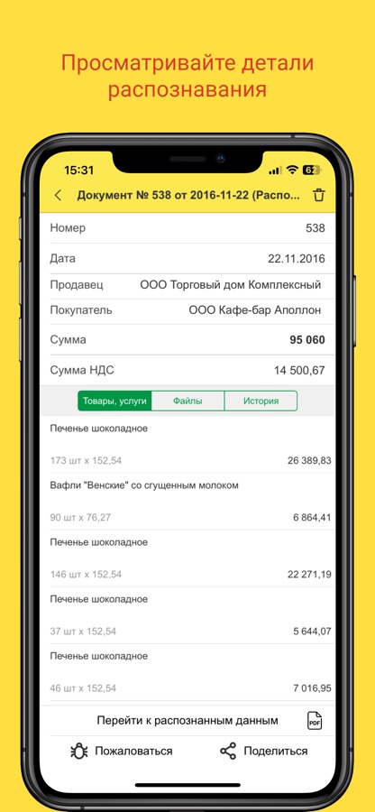 Нужная информация будет извлечена и подготовлена к вводу в программу 1С в удобном виде. Для этого достаточно просто сфотографировать документы и отправить их на распознавание прямо из мобильного приложения!
