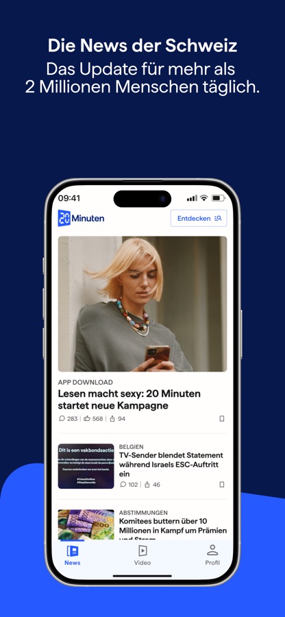 Es gibt viele News-Apps – doch die 20 Minuten App ist speziell auf die Anforderungen von Leserinnen und Lesern in der Schweiz zugeschnitten: