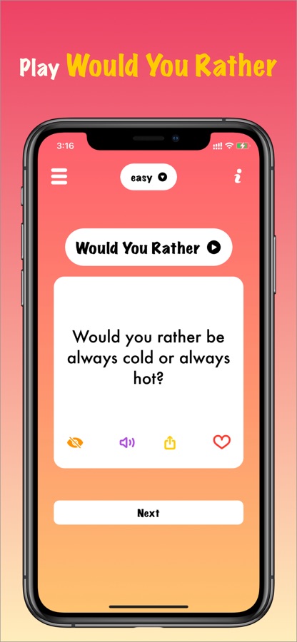 Вы можете использовать его в качестве приложения для начала беседы или приложения для создания бесед с друзьями, чтобы лучше узнать друг друга. Благодаря заданным вопросам и ответам вы получите выражение людей, которых хотите узнать глубже.
