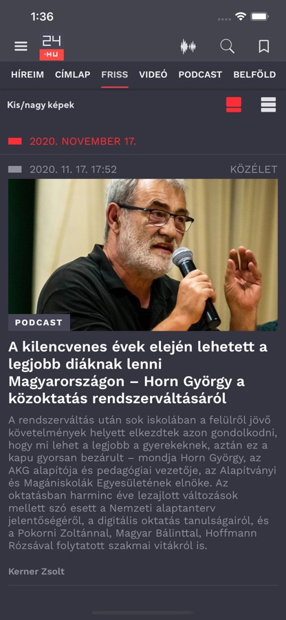 — Olvasott cikkek: a már elolvasott híreket egy külön menüpont alatt elérheted