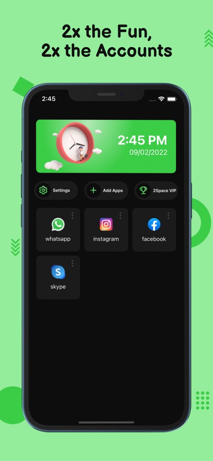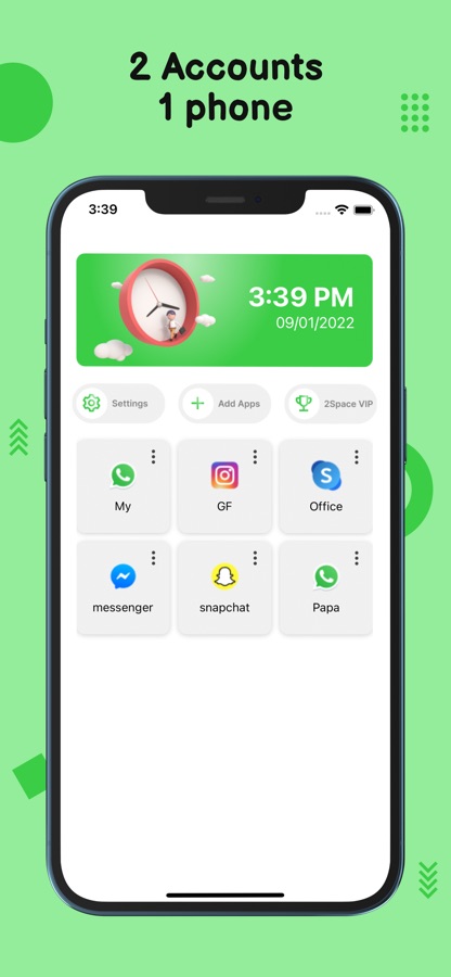 As an app cloner app for iPhone, 2Space can help you easily log in to multiple accounts on one device at the same time. 2Space will provide you with a parallel space where you can clone apps and log into multiple accounts of the same app, such as cloning whatsapp and more social apps, game apps. In addition, users can customize the name of any cloned application, view the running status of the cloned application.