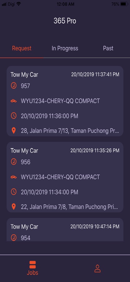 With 365 Pro provider can view job Request, In Progress and Pass.