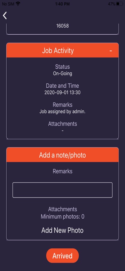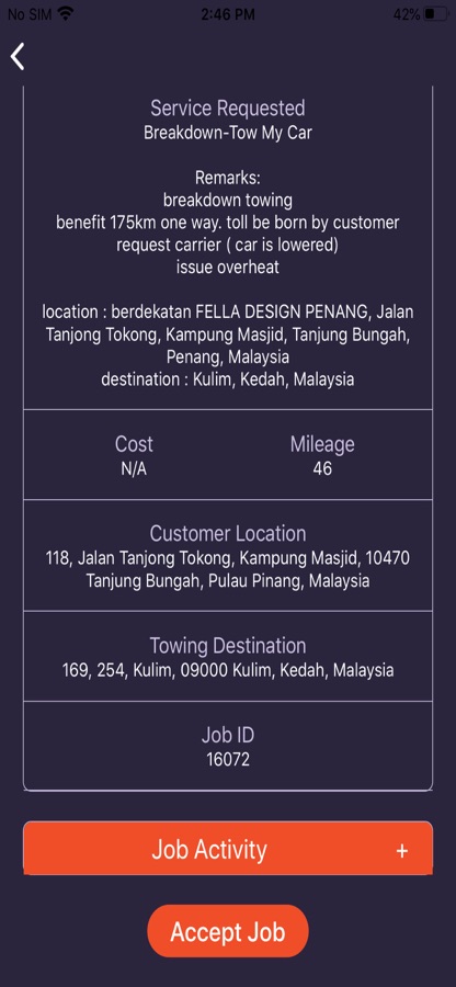 You can view the ongoing accepted service with customer details and job details in this figure.