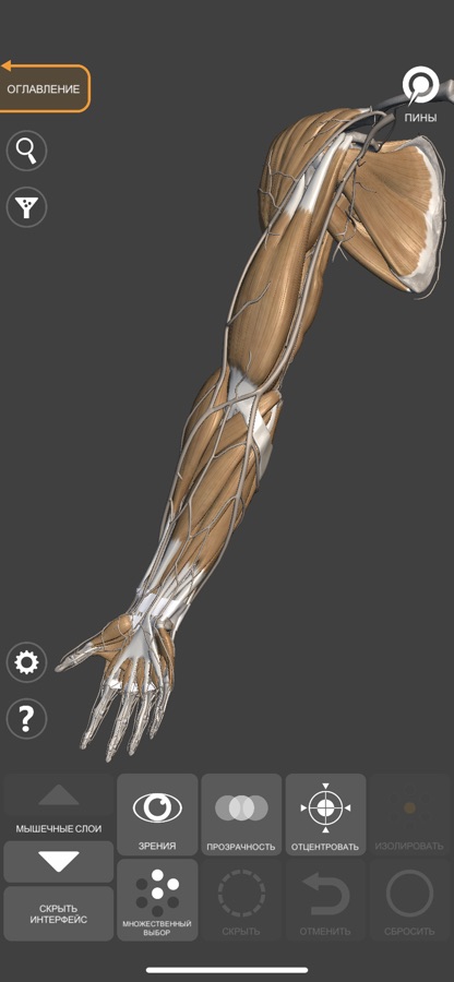 • Возможность спрятать каждую кость или мышцу по отдельности