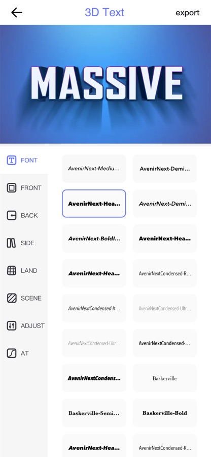 3D-текст может превратить вводимый вами текст в текст с трехмерным визуальным смыслом. Программное обеспечение использует профессиональный 3D-движок для создания настоящего трехмерного эффекта. Вы можете сделать текст таким же ярким, как заглавные субтитры голливудских блокбастеров. Он может создавать трехмерные текстовые изображения, текстовые выражения, текстовые видеоролики и поддерживает обмен WeChat одним щелчком мыши. Его можно использовать как трехмерный шрифт WeChat, а также навсегда сохранить его в альбоме мобильного телефона.