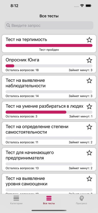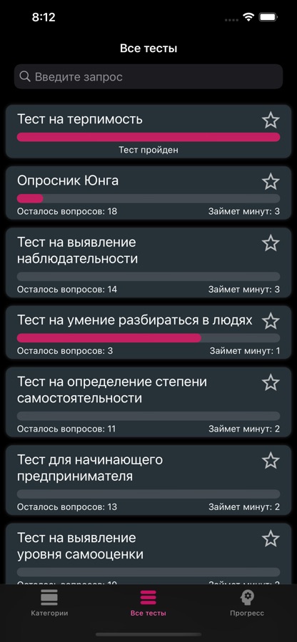 · Больше 40 психологических тестов.