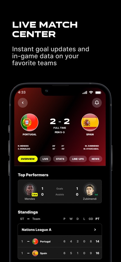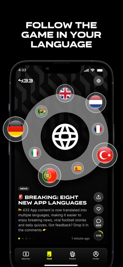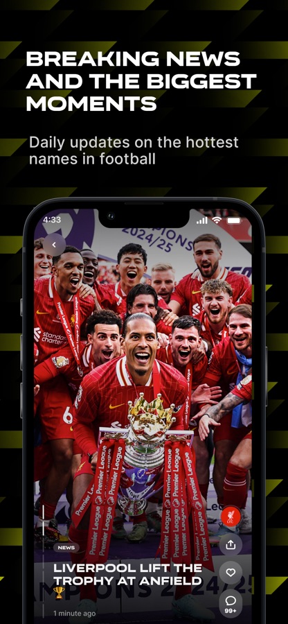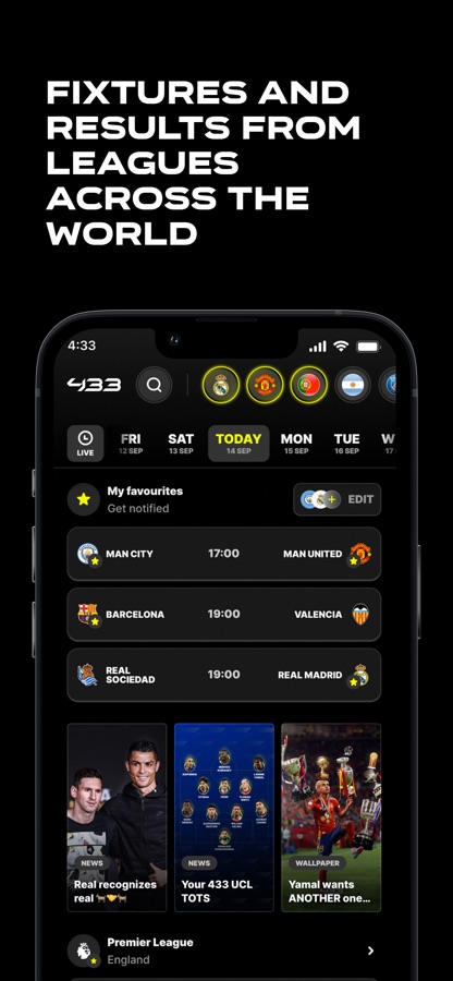 The 433 app is the ultimate football experience for every football lover. Whether you want to keep track of your team’s big match, stay up to date with all the latest news, kick back and watch some epic viral videos or simply test your footy knowledge with a variety of games… We’ve got you covered. Welcome to the home of football.