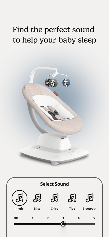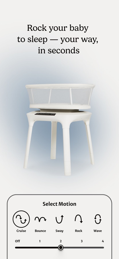 Mix and match 5 parent-inspired motions, 5 adjustable speeds, 4 soothing sounds, and 4 volume levels in the app