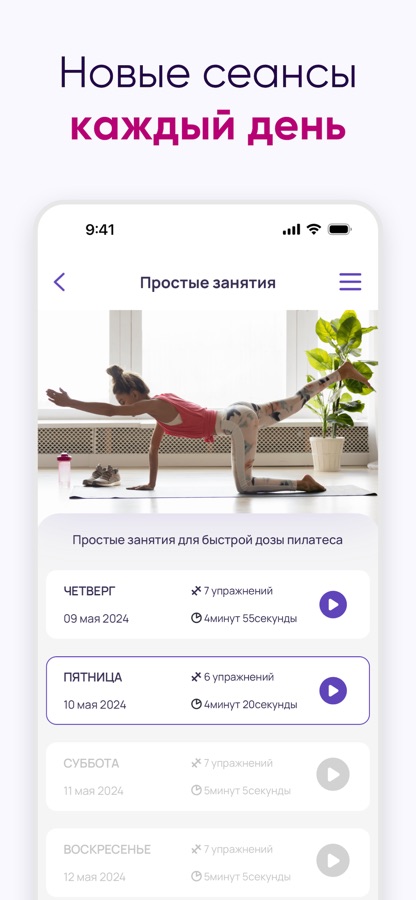 5-минутный пилатес содержит как бесплатный, так и Pro контент. Бесплатный контент включает в себя все испытания Путь для начинающих, а также 2 новых занятия каждую неделю: