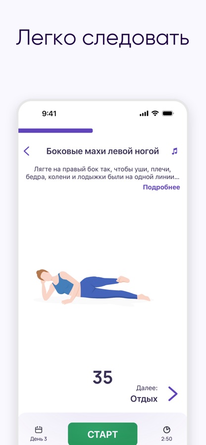 У всех упражнений есть понятные описания с 3D-анимацией. Идеально для начинающих.