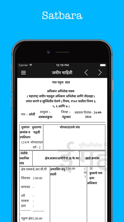 Описание 7/12 Satbara Utara Maharashtra