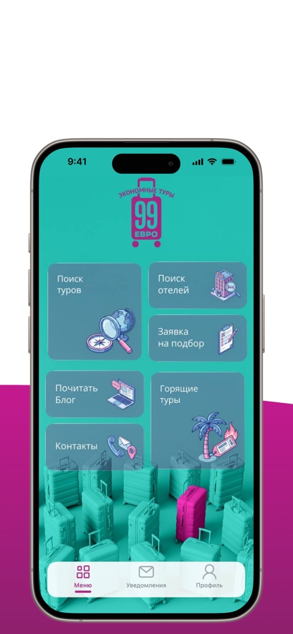 99 ЕВРО — экономные путешествия по всему миру. Скачайте приложение, чтобы искать самые выгодные предложения на путевки, отслеживать цены и находить лучший момент для покупки тура или бронирования отеля в вашем смартфоне!