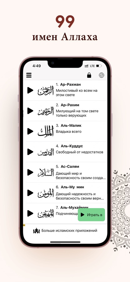 Скачайте приложение 99 Имен Аллаха Аудио Ислам для iOS бесплатно - последняя версия (2.9) уже доступна для установки на ваш iPhone или iPad.