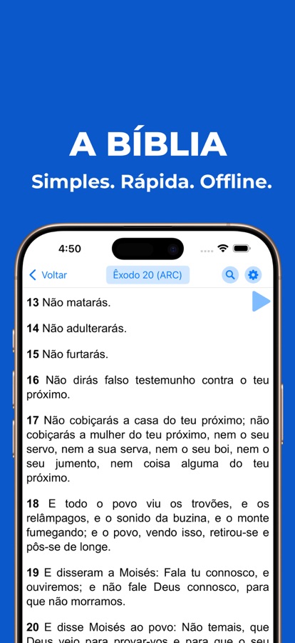 Leve com você no seu iPod Touch, iPhone e iPad, a Bíblia Sagrada. Você não precisa de conexão de internet para usá-lo, basta fazer o download e instalá-lo. E há um motor de busca integrado, útil quando você esquecer de onde é um versículo.