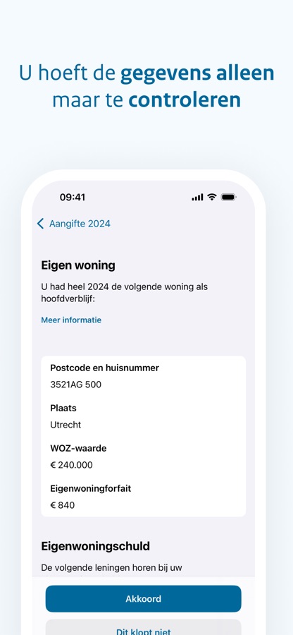 U haalt met uw DigiD uw gegevens op. Daarna controleert u ze. Klopt alles? Dan kunt u uw aangifte meteen ondertekenen en verzenden.
