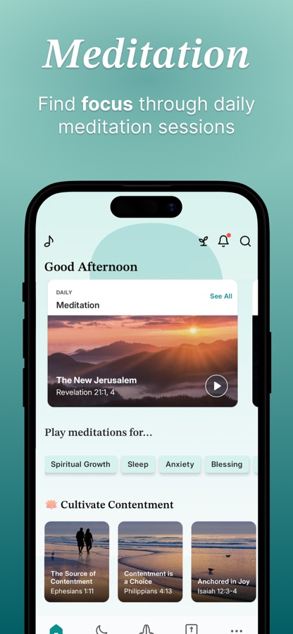 Thematic Biblical Content: Our content spans a wide array of themes, from anxiety and trust to healing and worship, ensuring there’s always a meditation that meets your needs.