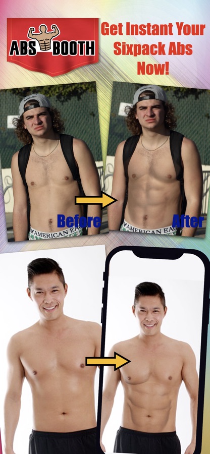 брюшной пресс фоторедактор создать реалистичную фотографию с 6-Pack Abs также включен смешными эффектами, добавить текст, сохранять и делиться в социальную сеть.