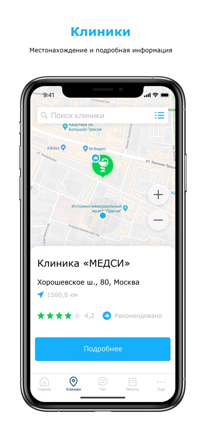 • осуществлять поиск на карте и просматривать контактную информацию медицинских организаций;