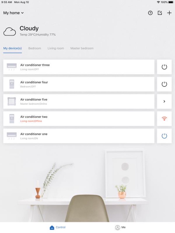 AC Freedom applied unique cloud computing technique. You can realize remote control of turning on and regulating the smart air conditioner through “AC Freedom” on mobile client. You can also check the working condition and set weekly timing. The interface is simple and friendly to customers which is only designed for specific home-used smart air conditioner rather than the whole production line.