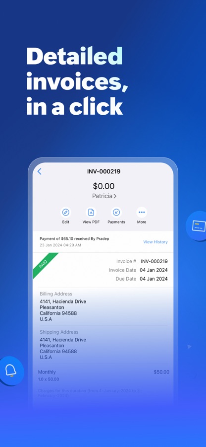 With the Zoho Books iPhone app your accountant is never far away to advise you. Invite your trusted advisor to review your numbers right from the comfort of his home or office.