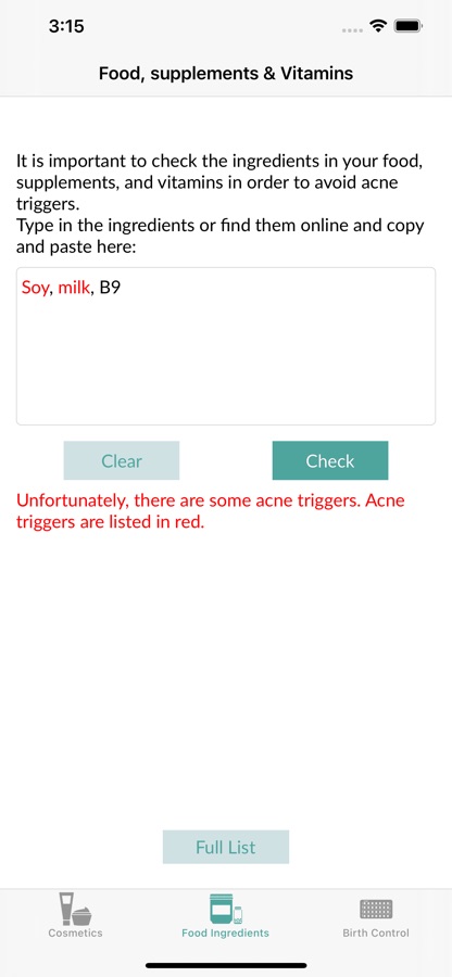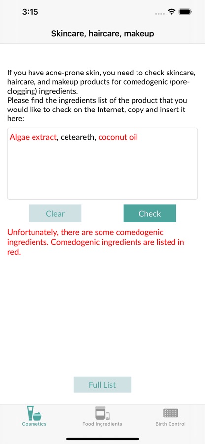 Having non-comedogenic skincare, makeup, and hair products is crucial to having clear skin. You might not even be aware that your moisturizer, foundation, or shampoo could be the reason you can’t fully get rid of acne! Comedogenic ingredients are the ingredients that clog your pores, resulting in different types of acne. Our application allows you to easily check whether the product’s ingredient list contains any pore-clogging ingredients, or if the product is safe to use on acne-prone skin.