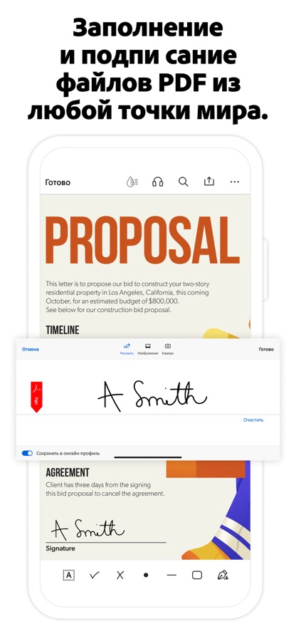 Функции Adobe Fill & Sign доступны в Adobe Acrobat Reader. Заполняйте, подписывайте и отправляйте формы. Сфотографируйте бумажную форму и заполните ее на смартфоне или планшете, электронно подпишите и отправьте ее. Не нужно отправлять по факсу или печатать документы.