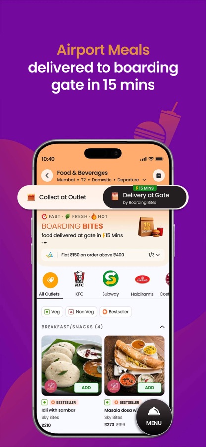 Food and Beverages at the airport can now be pre-ordered on the go, allowing you to explore the menu even before entering the airport and skip the queue at the counter. You can either pick it up from the counter or simply get it delivered to your table or even boarding gate. Make every meal at the airport DEALicious with great offers on every order.
