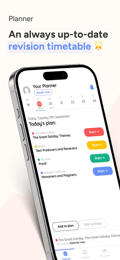 Adapt is the only revision timetable app that tests your progress with unlimited past paper questions for every GCSE and A Level subject. With instant examiner feedback, you’ll know exactly how to improve.