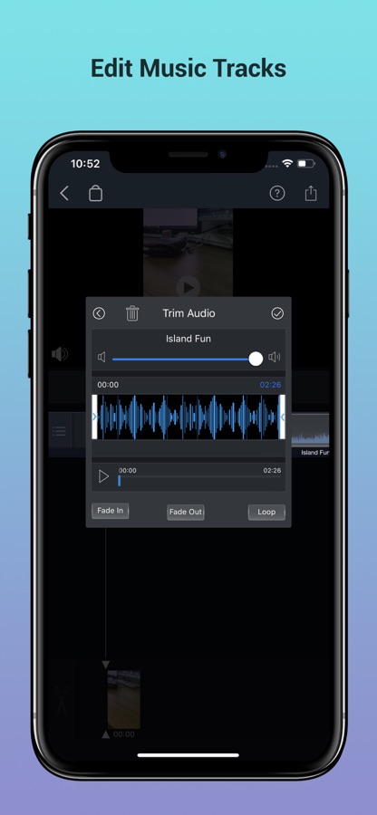— Edit Audio: Trim, Fade-in, Fade-out & Loop options.
