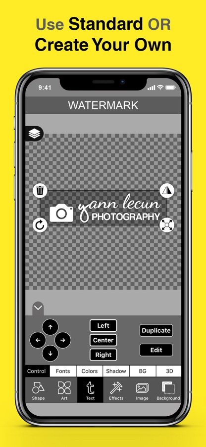 Создайте свой бренд мгновенно! Добавляйте логотипы, подписи или текст к фотографиям и видео. Защитите свой контент и дайте миру узнать, кто вы.