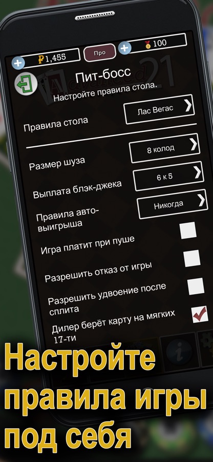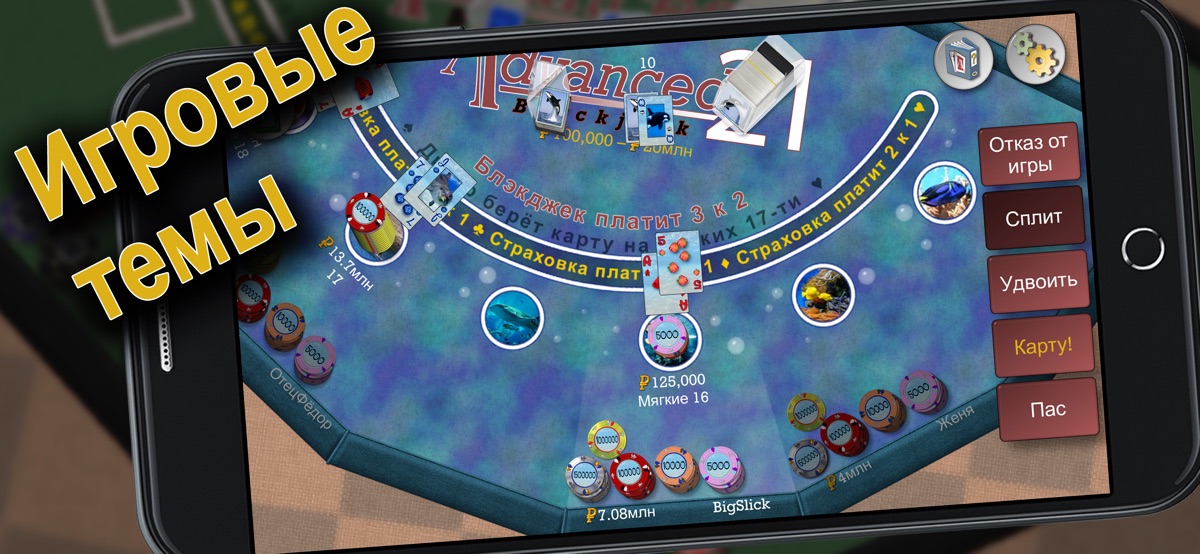 Внимание: вы можете скачать и сыграть в Advanced 21 Blackjack бесплатно, но некоторые опции доступны только после покупки. Если вы не хотите покупать эти опции, пожалуйста, отключите покупки или настройте пароль для покупок в магазине.